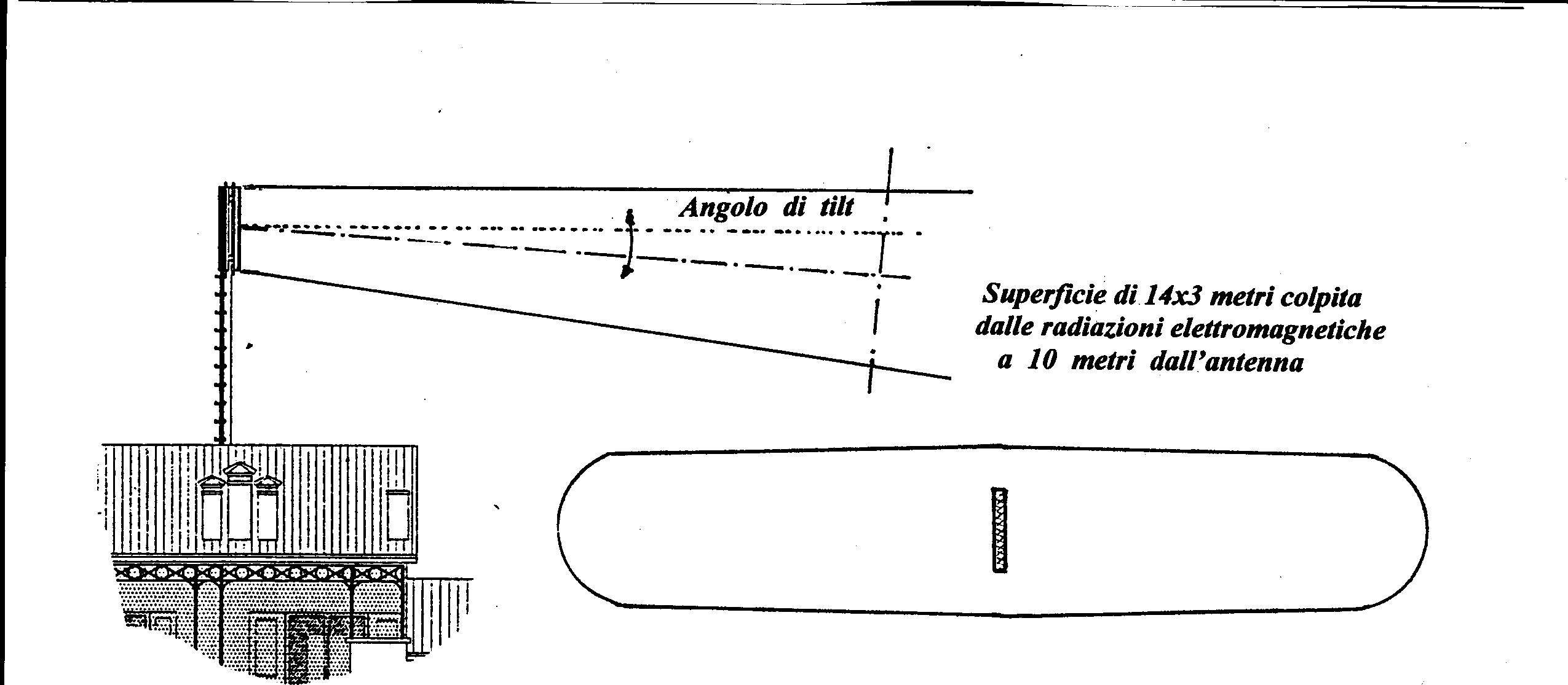 Un sistema di trasmissione da una Centrale Radio Base è costituito generalmente da più  antenne trasmittenti montate su un palo e orientate diversamente. Ogni antenna può trasmettere su più canali (almeno 6). In città è tipico vedere tre antenne su un palo montate a 120 gradi. Una antenna è costituita da molti dipoli (antenne elementari) incluse in un riflettore; in tal modo l’antenna irraggia i suoi segnali in un conoide principale di sezione ellittica, i cui angoli di trasmissione hanno  tipicamente 60-70 gradi di ampiezza in orizzontale  e  7-8 gradi di ampiezza in verticale. L’asse del conoide può avere una inclinazione rispetto al piano orizzontale; tale angolo si dice angolo di “ tilt “, e tipicamente varia da  0  a 8 gradi. Oltre al segnale irradiato  nel conoide principale, altri segnali più deboli sono irradiati intorno ad esso,  per dispersione.